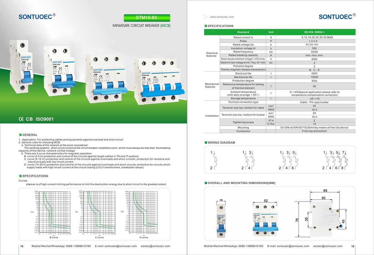 3.Protezzjoni ta 'tnixxija (xi MCBs għandhom din il-funzjoni): għal MCBs bi protezzjoni kontra t-tnixxija, meta jkun hemm tnixxija fiċ-ċirkwit, l-STM10-63 Miniature Circuit Breaker se jaqta' malajr iċ-ċirkwit biex jipproteġi s-sigurtà personali.